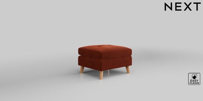 6.12.1 Buy Wilson Buttoned Back Footstool Plush Velvet Easy Clean Ginger Orange Retro Tapered - Light from the Next UK online shop Click here to use our accessible website