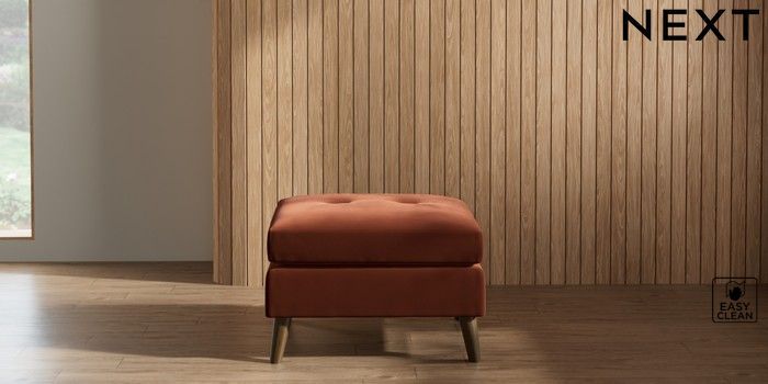 7.2.10 Buy Wilson Buttoned Back Footstool Plush Velvet Easy Clean Ginger Orange Retro Tapered - Mid from the Next UK online shop Click here to use our accessible website