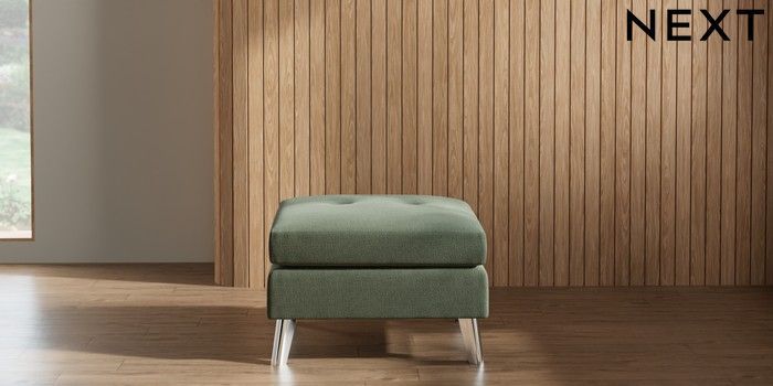 7.3.1 Buy Wilson Buttoned Back Footstool Relaxed Linen Look Dark Green Metal Tapered - Chrome from the Next UK online shop Click here to use our accessible website