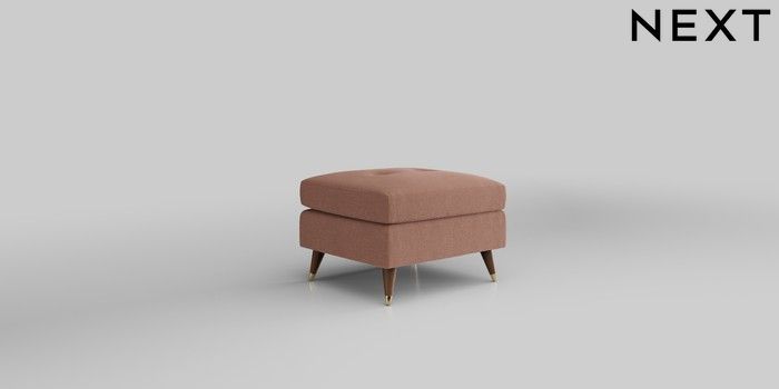 6.12.1 Buy Wilson Buttoned Back Footstool Relaxed Linen Look Light Rust Brown Low Retro Tapered Metal Cap - Mid from the Next UK online shop Click here to use our accessible website