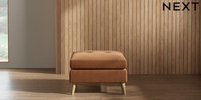 7.2.10 Buy Wilson Buttoned Back Footstool Ripple Chenille Mid Rust Brown Retro Tapered - Light from the Next UK online shop Click here to use our accessible website