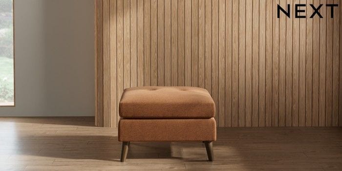 7.2.10 Buy Wilson Buttoned Back Footstool Ripple Chenille Mid Rust Brown Retro Tapered - Mid from the Next UK online shop Click here to use our accessible website