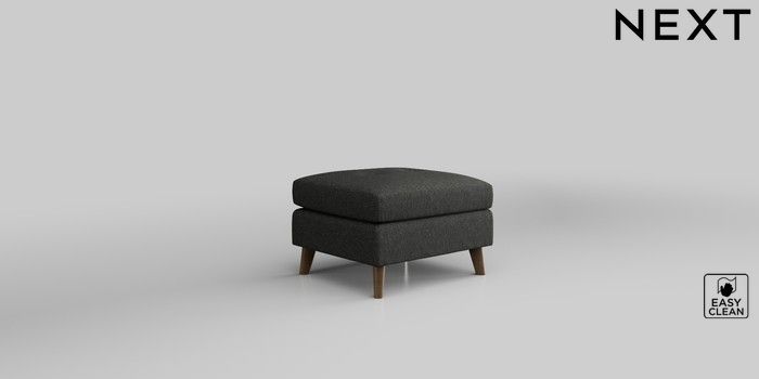 6.12.1 Buy Wilson Buttoned Back Footstool Tweedy Blend Easy Clean Charcoal Grey Retro Tapered - Mid from the Next UK online shop Click here to use our accessible website