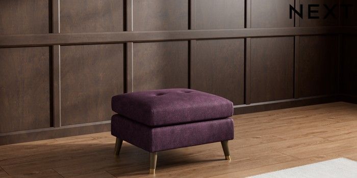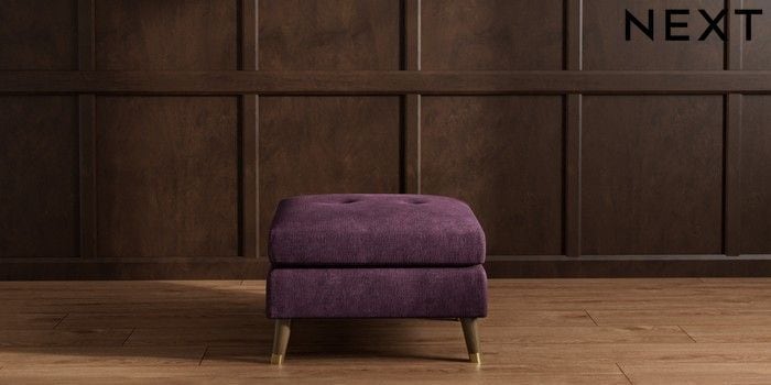 7.3.1 Buy Wilson Buttoned Back Footstool Plush Chenille Dark Plum Purple Low Retro Tapered Metal Cap - Mid from the Next UK online shop Click here to use our accessible website