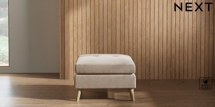 7.2.10 Buy Wilson Buttoned Back Footstool Tweedy Blend Easy Clean Light Dove Natural Retro Tapered - Light from the Next UK online shop Click here to use our accessible website