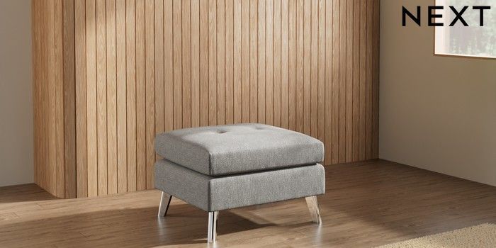 7.3.1 Buy Wilson Buttoned Back Footstool Tweedy Chenille Mid Grey Metal Tapered - Chrome from the Next UK online shop