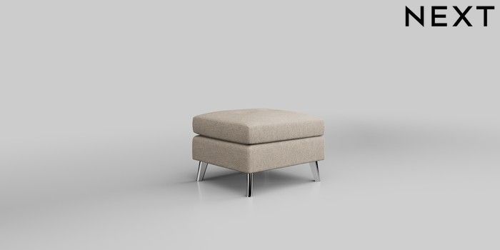 6.12.1 Buy Wilson Buttoned Back Footstool Tweedy Chenille Mid Natural Metal Tapered - Chrome from the Next UK online shop Click here to use our accessible website