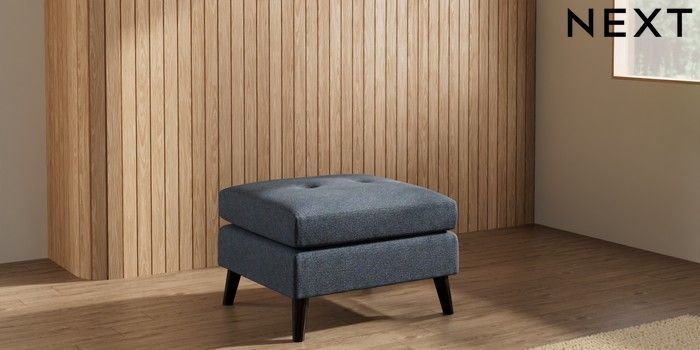 7.3.1 Buy Wilson Buttoned Back Footstool Tweedy Chenille Navy Blue Retro Tapered - Dark from the Next UK online shop