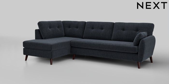6.12.1 Buy Wilson Buttoned Back Large Corner Chaise - Left Hand Boucle Chenille Dark Slate Blue Retro Tapered - Dark Brown from the Next UK online shop Click here to use our accessible website