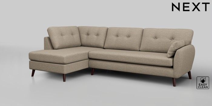 6.12.1 Buy Wilson Buttoned Back Large Corner Chaise - Left Hand Boucle Weave Easy Clean Dark Natural Retro Tapered - Dark Brown from the Next UK online shop Click here to use our accessible website