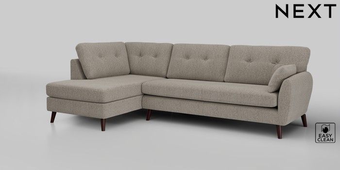 6.12.1 Buy Wilson Buttoned Back Large Corner Chaise - Left Hand Chunky Boucle Easy Clean Dove Retro Tapered - Dark Brown from the Next UK online shop Click here to use our accessible website