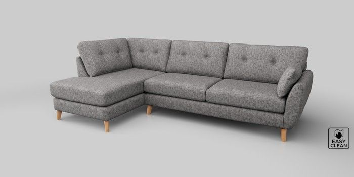 6.12.1 Buy Wilson Buttoned Back Large Corner Chaise - Left Hand Chunky Boucle Easy Clean Light Grey Retro Tapered - Light from the Next UK online shop Click here to use our accessible website