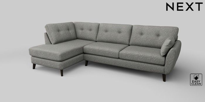6.12.1 Buy Wilson Buttoned Back Large Corner Chaise - Left Hand Chunky Boucle Easy Clean Mid Grey Retro Tapered - Dark from the Next UK online shop Click here to use our accessible website