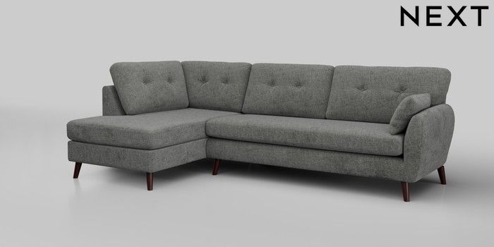 6.12.1 Buy Wilson Buttoned Back Large Corner Chaise - Left Hand Chunky Chenille Dark Grey Retro Tapered - Dark Brown from the Next UK online shop Click here to use our accessible website
