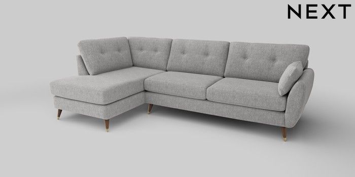 6.12.1 Buy Wilson Buttoned Back Large Corner Chaise - Left Hand Chunky Chenille Light Grey Low Retro Tapered Metal Cap - Mid from the Next UK online shop Click here to use our accessible website