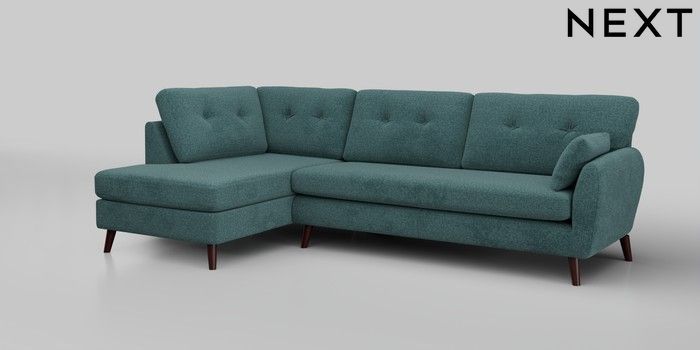 6.12.1 Buy Wilson Buttoned Back Large Corner Chaise - Left Hand Chunky Chenille Mid Teal Green Retro Tapered - Dark Brown from the Next UK online shop Click here to use our accessible website