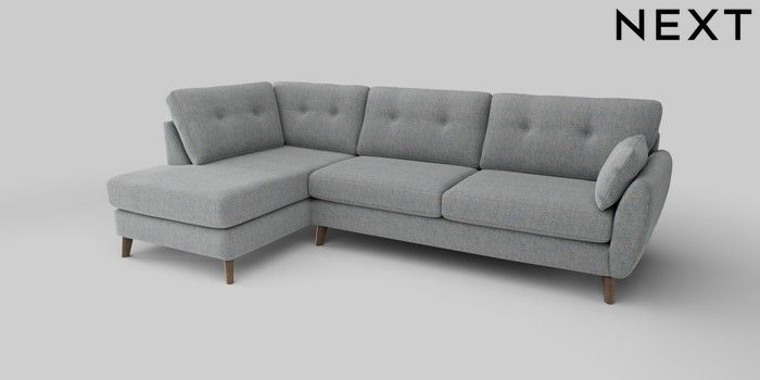 6.12.1 Buy Wilson Buttoned Back Large Corner Chaise - Left Hand Chunky Marl Mid Grey Retro Tapered - Mid from the Next UK online shop Click here to use our accessible website