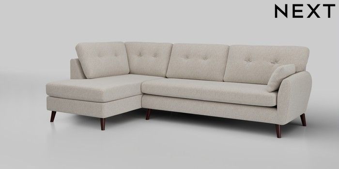 6.12.1 Buy Wilson Buttoned Back Large Corner Chaise - Left Hand Chunky Marl Oyster Retro Tapered - Dark Brown from the Next UK online shop Click here to use our accessible website