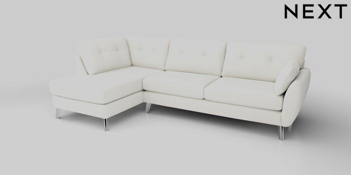 6.12.1 Buy Wilson Buttoned Back Large Corner Chaise - Left Hand Chunky Texture Oyster Metal Tapered - Chrome from the Next UK online shop Click here to use our accessible website