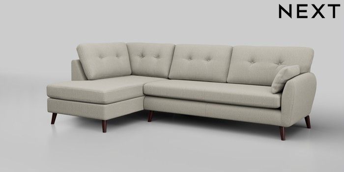 6.12.1 Buy Wilson Buttoned Back Large Corner Chaise - Left Hand Chunky Texture Oyster Retro Tapered - Dark Brown from the Next UK online shop Click here to use our accessible website