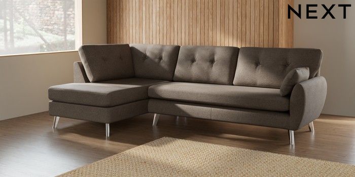 7.3.1 Buy Wilson Buttoned Back Large Corner Chaise - Left Hand Chunky Weave Dark Natural Metal Tapered - Chrome from the Next UK online shop Click here to use our accessible website