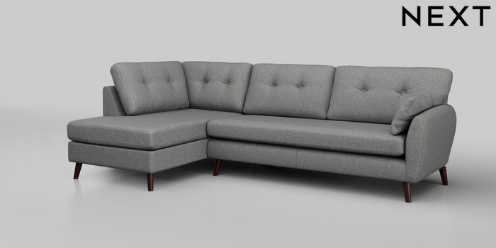 6.12.1 Buy Wilson Buttoned Back Large Corner Chaise - Left Hand Chunky Weave Mid Grey Retro Tapered - Dark Brown from the Next UK online shop Click here to use our accessible website