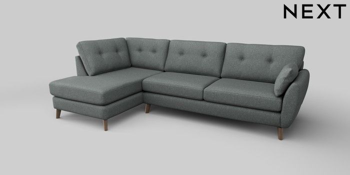 6.12.1 Buy Wilson Buttoned Back Large Corner Chaise - Left Hand Chunky Weave Mid Grey Retro Tapered - Mid from the Next UK online shop Click here to use our accessible website