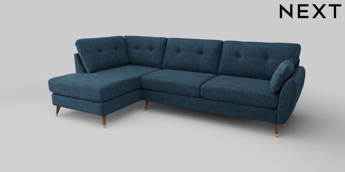 6.12.1 Buy Wilson Buttoned Back Large Corner Chaise - Left Hand Cotswold Chenille Dark Blue Low Retro Tapered Metal Cap - Mid from the Next UK online shop Click here to use our accessible website