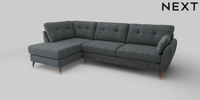 6.12.1 Buy Wilson Buttoned Back Large Corner Chaise - Left Hand Cotswold Chenille Dark Grey Low Retro Tapered Metal Cap - Mid from the Next UK online shop Click here to use our accessible website