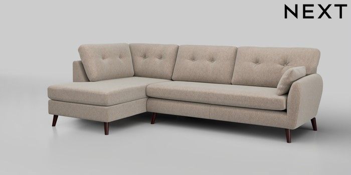 6.12.1 Buy Wilson Buttoned Back Large Corner Chaise - Left Hand Cotswold Chenille Light Natural Retro Tapered - Dark Brown from the Next UK online shop Click here to use our accessible website
