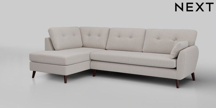 6.12.1 Buy Wilson Buttoned Back Large Corner Chaise - Left Hand Cotswold Chenille Oyster Retro Tapered - Dark Brown from the Next UK online shop Click here to use our accessible website