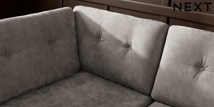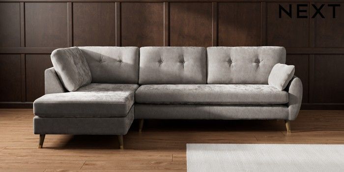 7.3.1 Buy Wilson Buttoned Back Large Corner Chaise - Left Hand Distressed Velour French Grey Low Retro Tapered Metal Cap - Mid from the Next UK online shop Click here to use our accessible website