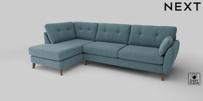 6.12.1 Buy Wilson Buttoned Back Large Corner Chaise - Left Hand Fine Chenille Easy Clean Mid Blue Retro Tapered - Mid from the Next UK online shop Click here to use our accessible website