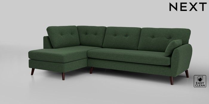 6.12.1 Buy Wilson Buttoned Back Large Corner Chaise - Left Hand Fine Chenille Easy Clean Mid Khaki Green Retro Tapered - Dark Brown from the Next UK online shop Click here to use our accessible website