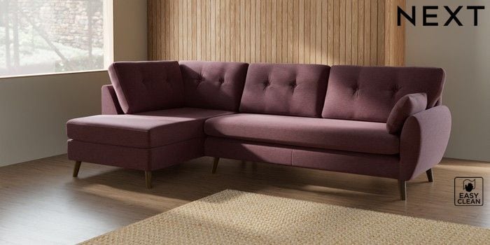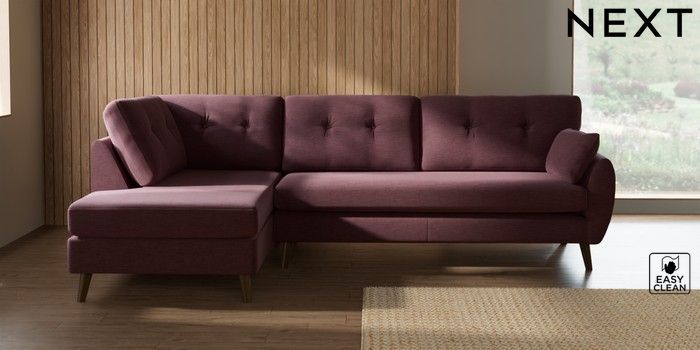 7.3.1 Buy Wilson Buttoned Back Large Corner Chaise - Left Hand Fine Chenille Easy Clean Mid Mulberry Purple Retro Tapered - Mid from the Next UK online shop Click here to use our accessible website