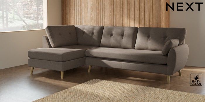 7.3.1 Buy Wilson Buttoned Back Large Corner Chaise - Left Hand Fine Chenille Easy Clean Mid Taupe Brown Retro Tapered - Light from the Next UK online shop Click here to use our accessible website