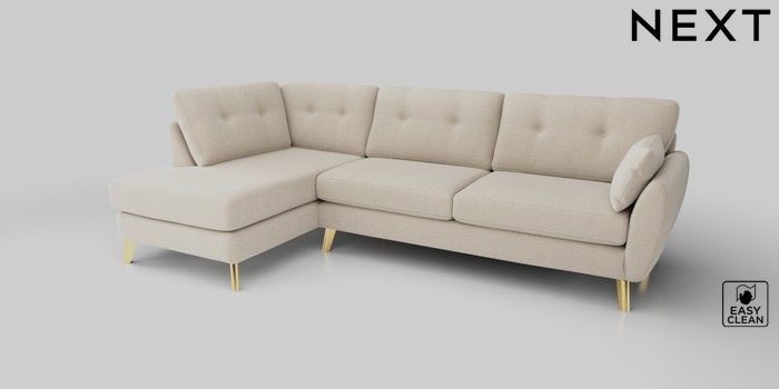 6.12.13 Buy Wilson Buttoned Back Large Corner Chaise - Left Hand Fine Chenille Easy Clean Oyster Metal Tapered - Gold from the Next UK online shop Click here to use our accessible website