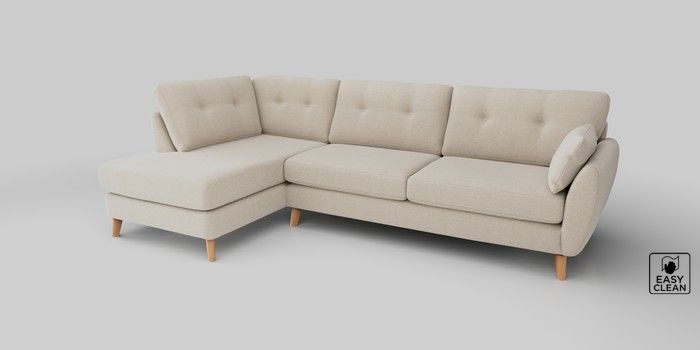 6.12.1 Buy Wilson Buttoned Back Large Corner Chaise - Left Hand Fine Chenille Easy Clean Oyster Retro Tapered - Light from the Next UK online shop Click here to use our accessible website