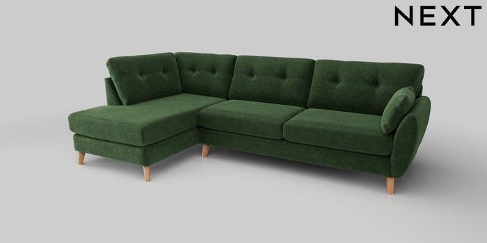 6.12.1 Buy Wilson Buttoned Back Large Corner Chaise - Left Hand Luxe Chenille Dark Green Retro Tapered - Light from the Next UK online shop Click here to use our accessible website