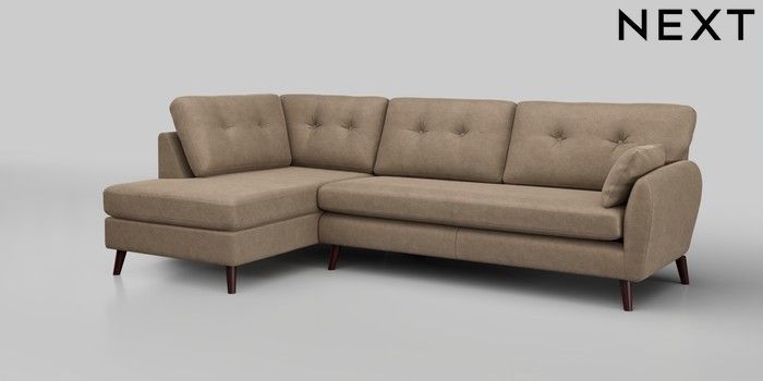 6.12.1 Buy Wilson Buttoned Back Large Corner Chaise - Left Hand Luxe Chenille Mid Camel Beige Retro Tapered - Dark Brown from the Next UK online shop Click here to use our accessible website