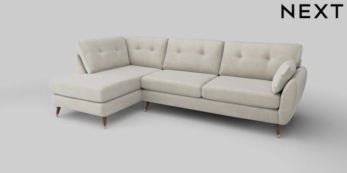 7.0.3 Buy Wilson Buttoned Back Large Corner Chaise - Left Hand Luxe Chenille Oyster Low Retro Tapered Metal Cap - Mid from the Next UK online shop Click here to use our accessible website