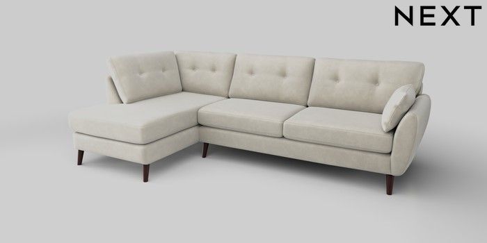 7.0.3 Buy Wilson Buttoned Back Large Corner Chaise - Left Hand Luxe Chenille Oyster Retro Tapered - Dark Brown from the Next UK online shop Click here to use our accessible website