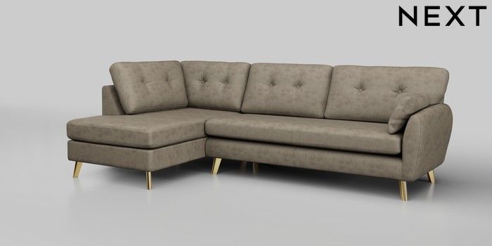 6.12.1 Buy Wilson Buttoned Back Large Corner Chaise - Left Hand Monza Faux Leather Easy Clean Mink Brown Metal Tapered - Gold from the Next UK online shop Click here to use our accessible website