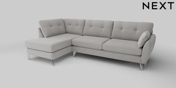 6.12.1 Buy Wilson Buttoned Back Large Corner Chaise - Left Hand Natural Mix Light Grey Metal Tapered - Chrome from the Next UK online shop Click here to use our accessible website