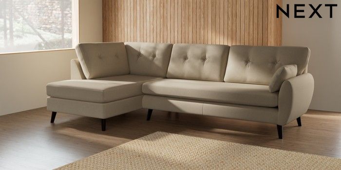 7.2.10 Buy Wilson Buttoned Back Large Corner Chaise - Left Hand Natural Mix Light Natural Retro Tapered - Dark from the Next UK online shop Click here to use our accessible website