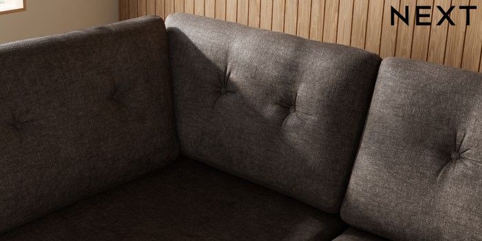 7.3.1 Buy Wilson Buttoned Back Large Corner Chaise - Left Hand Plush Chenille Mink Brown Metal Tapered - Gold from the Next UK online shop Click here to use our accessible website