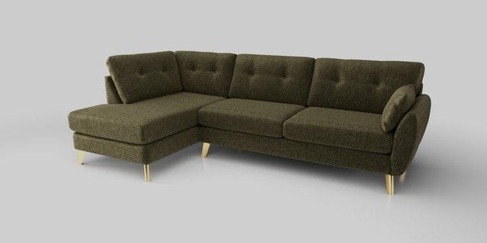 6.12.1 Buy Wilson Buttoned Back Large Corner Chaise - Left Hand Plush Chenille Moss Green Metal Tapered - Gold from the Next UK online shop Click here to use our accessible website