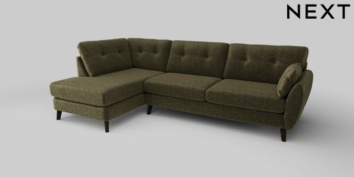 6.12.1 Buy Wilson Buttoned Back Large Corner Chaise - Left Hand Plush Chenille Moss Green Retro Tapered - Dark from the Next UK online shop Click here to use our accessible website