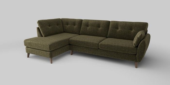 6.12.1 Buy Wilson Buttoned Back Large Corner Chaise - Left Hand Plush Chenille Moss Green Retro Tapered - Mid from the Next UK online shop Click here to use our accessible website