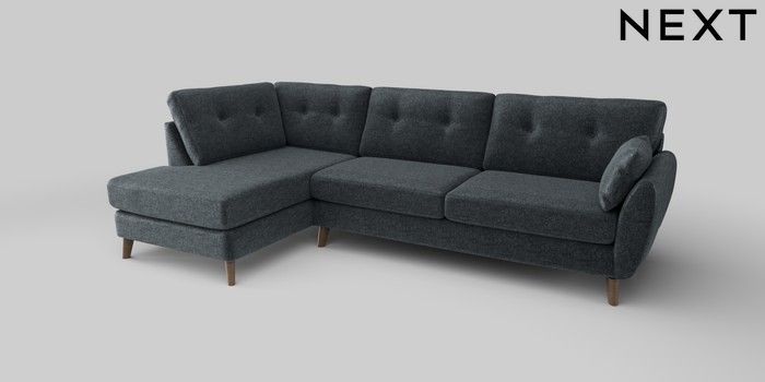 6.12.1 Buy Wilson Buttoned Back Large Corner Chaise - Left Hand Plush Chenille Slate Blue Retro Tapered - Mid from the Next UK online shop Click here to use our accessible website